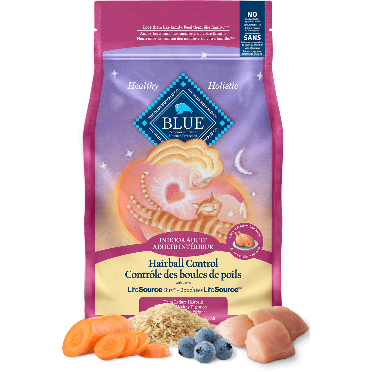 BLUE Tastefuls Indoor Hairball Recipe for indoor cats features delicious, high-quality chicken with carefully balanced calories to help maintain a healthy weight and a unique blend of three natural fiber sources to help reduce hairball formation.