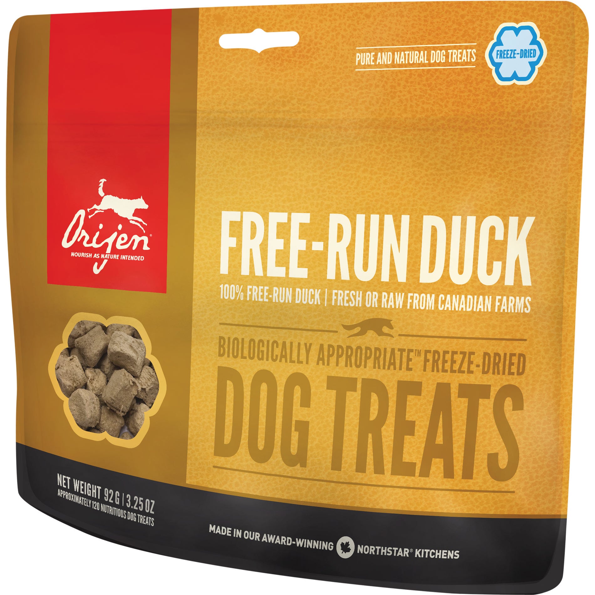 Made with 100% natural meats, poultry or fish (and nothing else!), all gently freeze dried to lock in their goodness, ORIJEN treats offer a taste experience your cherished dog will love you for.