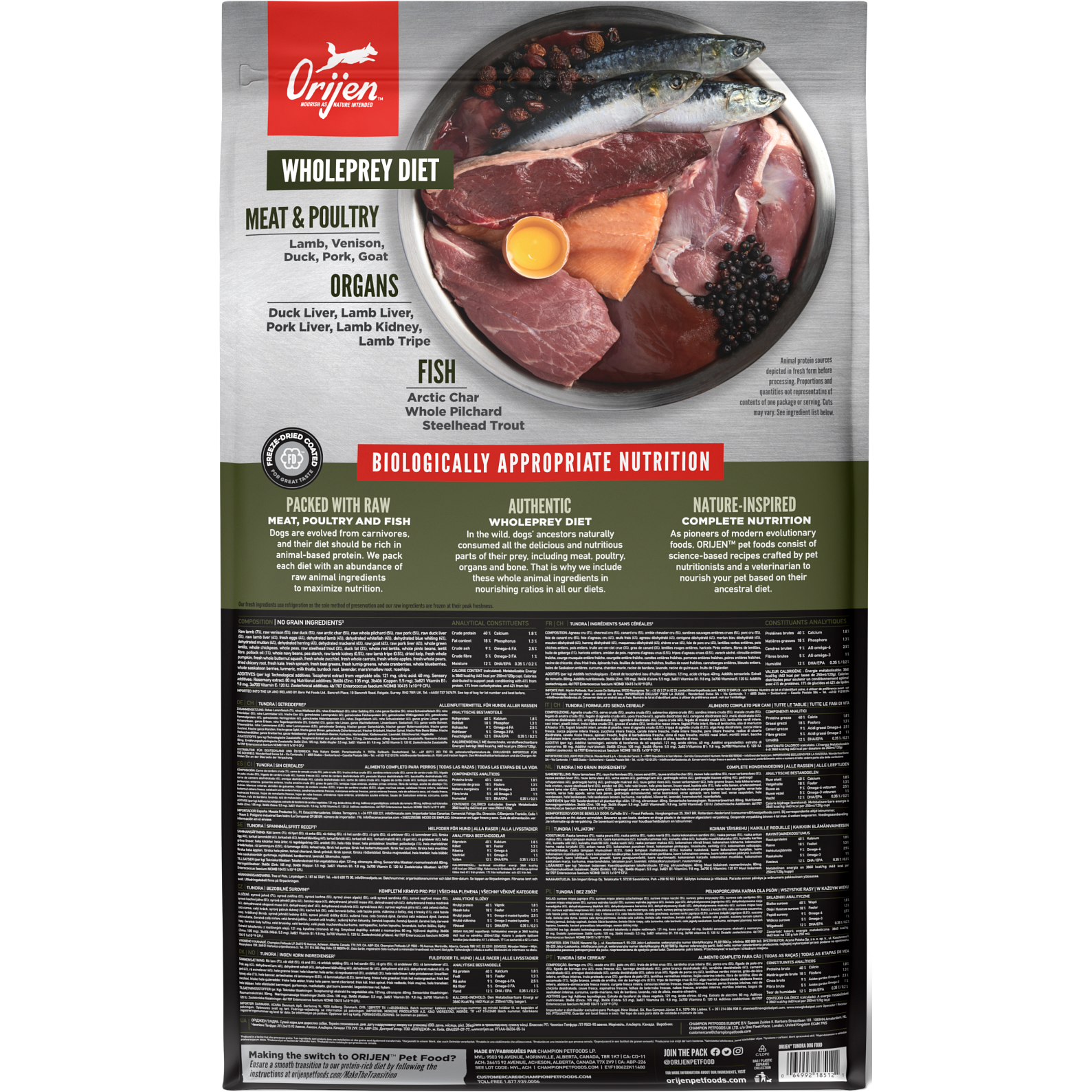 - Our authentic WholePrey diet features the most succulent parts of the prey like meat, duck or fish, organs and bone to mimic what your dog’s ancestors consumed in the wild.