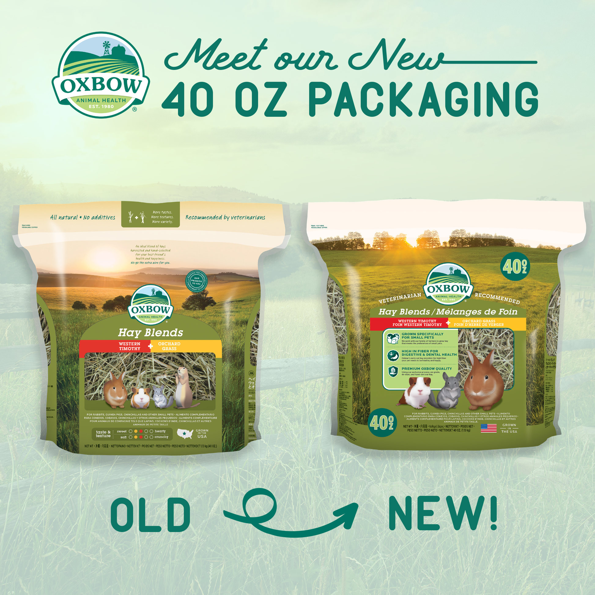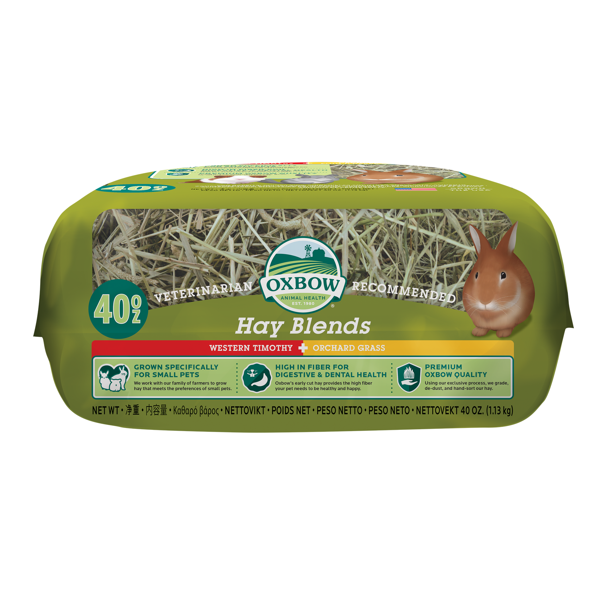 Small pets enjoy and benefit from variety in their daily diet. That’s why we’re so excited to offer our Hay Blends. Your pet rabbit, guinea pig or chinchilla is sure to love this enriching blend of premium Oxbow hays. We hand-select and blend Western Timothy and Orchard Grass to create the perfect blend of tastes and textures. Your pet should have unlimited grass hay every day.