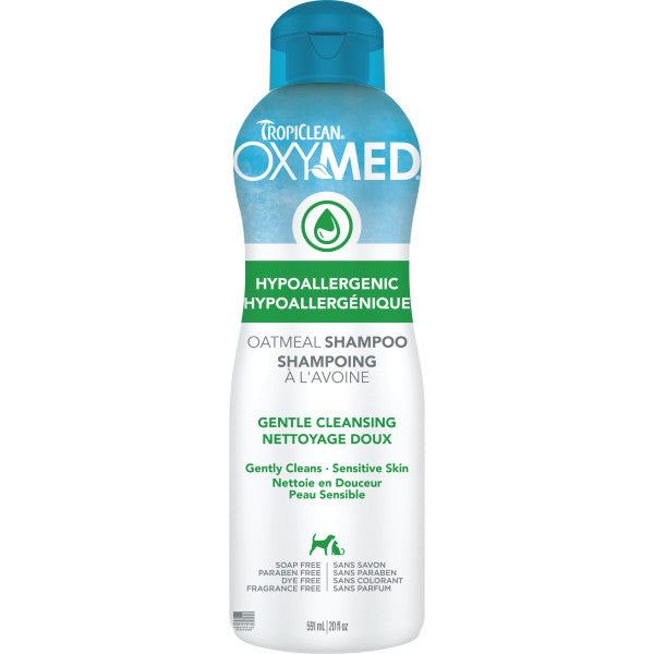 OxyMed Hypoallergenic Oatmeal Shampoo is a gentle cleansing solution formulated with our mild coconut cleanser for pets with allergies and sensitive skin. This shampoo is enriched with vitamin E, aloe, and oatmeal to provide soothing relief. This hypoallergenic and tear-free formula deodorizes while gently rehydrating the skin, making it perfect for use on puppies and kittens. TropiClean Pet Products are cruelty free.