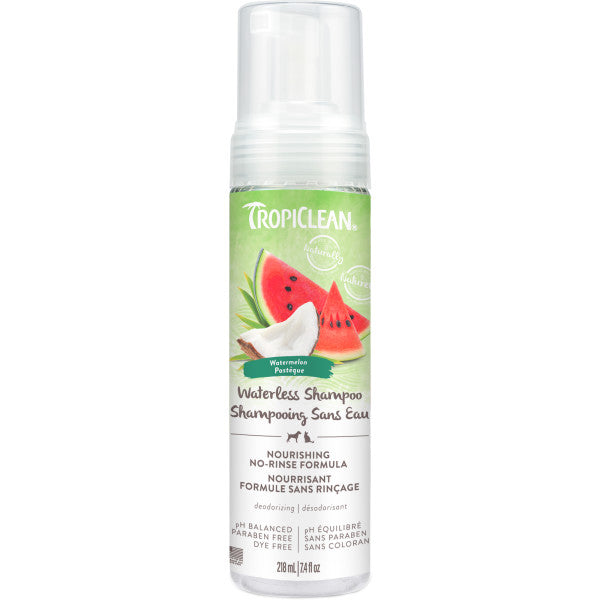 TropiClean Watermelon Waterless Pet Shampoo is enriched with a botanical blend that helps moisturize the pet's skin and coat and provides a refreshing clean between baths. The sweet summer scent of watermelon leaves your pet smelling fresh and ready for cuddles!
